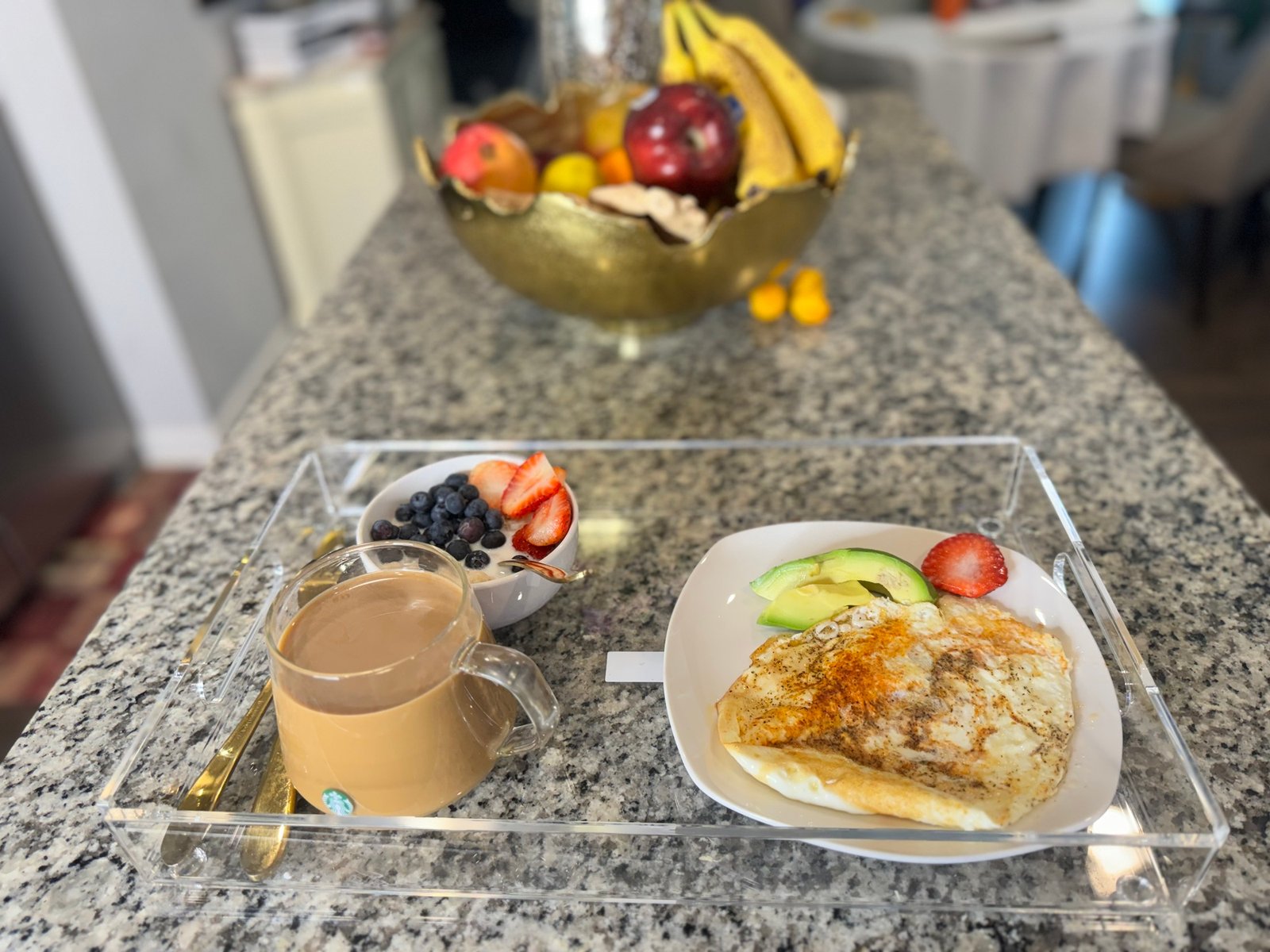 The day began with the comforting aroma of freshly brewed coffee. There’s something magical about those first sips in the quiet of the morning, setting a positive tone for the day ahead. For breakfast, I enjoyed a delicious spread, which included my favorite avocado toast, fresh fruit, and a warm croissant. It was a peaceful start to the day, a moment to savor and reflect.